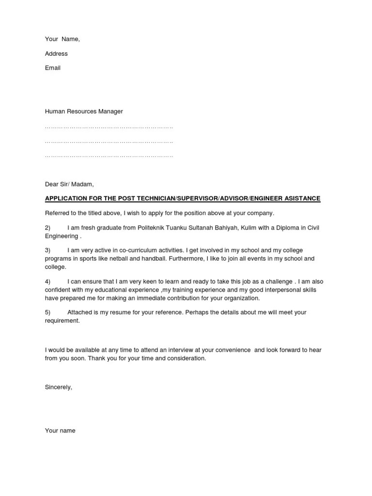 Connect your skills to the job · paragraph 3: . Tips for writing a recent college graduate cover letter. A cover letter is at least as important as a resume in helping you land an interview for the job you want. (your name) for (position) · (note: How to write an effective cover letter for fresh graduates in malaysia?